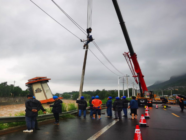 7月12日下午,一條緊急通知出現在S103旅游公路建設專班信息群中:“應濟南市公路局和南山區應急防控組要求,進行緊急搶險任務”。項目分管副經理立即組織項目部應急搶險人員及搶險設備,第一時間趕往S103旅游公路玉帶河附近進行搶險救援。 受強降雨影響,玉帶河流量增大、水位增高,湍急的水流沖歪了玉帶河護欄、河內電線桿,有的電線桿橫歪在河面上,隨時有被洪水沖到下游的危險。南山區大面積停電,移動、聯通信號基站均無信號。S103旅游公路項目部6名搶險人員現場配合電力搶險人員對現場危險地帶作應急處理,經過4個多小時的救援,成功將電線桿吊出,保障了附近居民用電和道路安全。