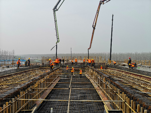 近日,匯通公司承建的沭陽快速路二期工程義烏路--慈溪路上跨橋37號墩柱混凝土開始澆筑。義烏路—慈溪路上跨橋全長1406.9米,共13聯,主線橋現澆等高箱梁(橋寬25.5米)橋墩采用雙柱式“花瓶”形,中部系梁連接。37號墩柱模板安裝冬季混凝土施工質量控制難度大、高空作業安全風險系數高。為順利完成第一根墩柱施工,項目部在施工前做了精細的施工準備,制定周密的質量控制措施,確保施工作業平臺安全穩固。施工過程中,技術、質檢、材料、安全部門人員全部到位,確保施工過程安全、材料供給及時、質量達到要求。在各部門的密切配合下,37號墩柱順利完成澆筑。37號墩柱混凝土澆筑后續施工中,項目部將繼續保持工作熱情,保證