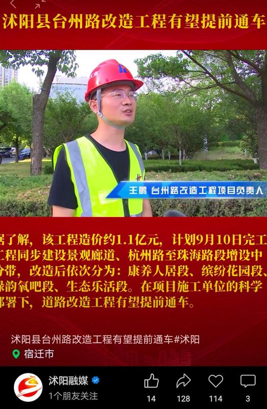 6月8日,沭陽縣電視臺及沭陽融媒公眾號分別以《沭陽縣臺州路改造工程有望提前通車》為題,對匯通公司承建的沭陽縣臺州路改造工程科學組織、精準實施,加快推進項目建設進行專訪報道。沭陽縣臺州路改造工程(杭州路至珠海路)項目位于宿遷市沭陽縣,全長3442米。自5月10日接到沭陽縣住建局指示進場以來,在各方領導的幫助和支持下,項目部通過精心策劃,高效實施,在保證施工安全和質量的前提下,將原有合同工期120天壓縮至72天,獲得了業主的一致好評,得到了市民肯定。工程效果圖筑夢路上,我們以精細化、快速化、人性化施工管理理念,奮勇當先,深耕細作,助力工程建設再創佳績,向沭陽縣人民交上一份滿意的答卷!