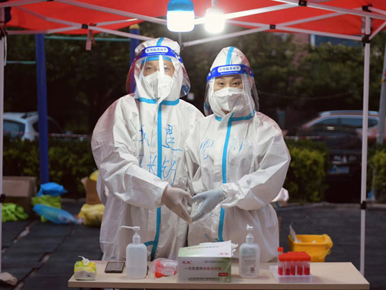 在抗擊疫情的戰線上,有這樣一對美麗又溫暖的身影,他們彼此牽掛又相互鼓勵,他們心系家人又攜手同行,他們是戰疫中的最美夫妻檔,舍小家顧大家,用實際行動書寫著別樣的浪漫。?疫線伉儷雙倍守護? 陳長錫是匯通公司的一名項目總工,在4月27日接到防疫志愿服務任務后,他積極響應義無反顧投身到防疫工作中去。 他所在的南苑社區共設11個采樣點,分布范圍廣、居民多、人員分散,面對全新的工作環境和任務,他及時調整心態、轉變角色,與組長劉世鵬一起詳細了解掌握社區情況,熟悉工作流程。 在雅秀園門崗服務站點,在做好個人防護措施后,迅速投入到居民核酸檢測、社區消毒消殺、運送防疫檢測物資等工作中。此站點居民