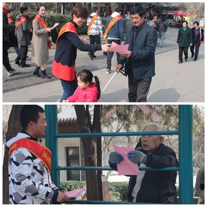 陽春三月,萬物復蘇,三月是一個春意盎然的時節,更是一個講文明、樹新風,讓雷鋒精神遍布華夏大地的季節。17名青年志愿者來到濟南大明湖風景名勝區,拿起掃帚、垃圾夾、垃圾袋等工具,自發投入到清掃隊伍中,開始了今天的“戰斗”。他們有的蹲下來撿起地上亂扔的煙頭,有的把手伸進灌木叢清理黏貼的口香糖,有的手拿“共建綠色家園 共享一片藍天”倡議書分發給游園的市民,呼吁廣大市民從我做起,讓文明之風吹遍泉城大地。活動過程中,志愿者們分工有序,配合默契,干勁十足,豆大的汗珠從臉頰滑落也渾然不知,過往游客紛紛豎起大拇指,為他們點贊。