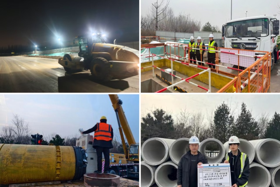 各項目錨定建設目標、細化施工部署,統籌推進安全、質量、進度協同發力,復工復產成效顯著:全福立交橋西側人行天橋夜間攻堅完成主橋吊裝;衢州市浙西大道項目組織召開前期策劃會;湖州市市北二路1#標段橋梁主體結構全部完工,道路水穩層攤鋪完成85%,附屬工程施工蓄勢待發;濟南市臘山水質凈化廠擴建工程關鍵構筑物施工有序推進,建成后污水處理能力將大幅提升,助力城市水環境提質增效;國博城五期三標穩步推進道路工程施工,非機動車道、管線鋪設等工序高效落地;華山片區管網項目緊盯施工節點,全力完善區域管網布局,夯實民生保障基礎;江蘇泗陽嘉興路工程作為園區重點路網項目,緊盯工期目標,高標準推進主干道建設,著力打通園區交通堵點。